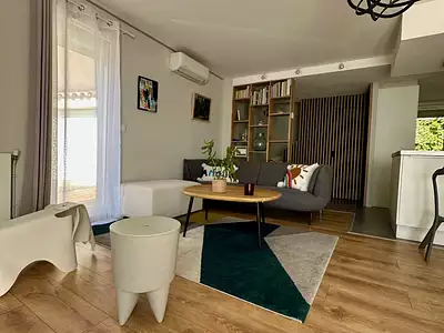 Studio meublé en rez-de-chaussée donnant sur une terrasse (partie commune), composé d'une belle pièce principale, une cuisine, un cellier, une salle d'eau avec wc. Mobilier neuf,...