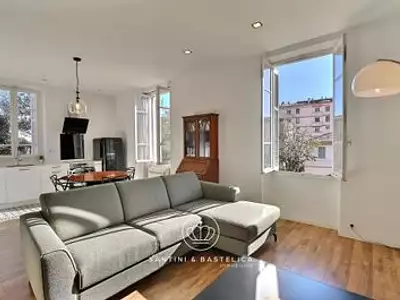 Appartement 3 pièces - Ajaccio C'est niché au 5ème et dernier étage sans ascenseur que l'on retrouve ce petit nid douillet de 60m² présenté en exclusivité par l'agence Santini & Bastelica...