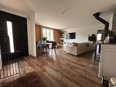 Cette superbe maison ancienne rénovée se compose d'une entrée, une cuisine équipée, un séjour, un salon avec un poêle à granulés, une salle à manger, 3 chambres, une buanderie, une salle...