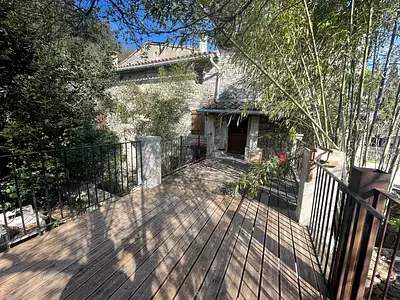 Proche de Canaules et Argentières, jolie maison de village en pierres comprenant 2 logements avec jardinet et terrasse 1 F4 et F3 avec piscine intérieure et rare pour une maison de...