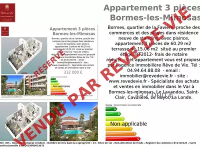Vendu en mars 2022 Bormes-les-Mimosas (83230) Appartement • 60 m² • 3 pièces Demander des infos Vendu en mars 2022