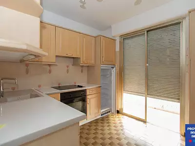 Type 2 de 53 m2 avec terrasse de 10 m2 au 1er étage d'un immeuble de ville. Loué depuis 2008 à la même locataire qui s'y trouve bien.La pièce principale représente avec le coin cuisine...
