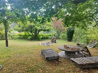 Maison en pierres, et toiture en ardoises. Au rez-de-chaussée : terrasse, hall d'entrée, cuisine, salon, séjour, bureau, wc, Au premier étage, avec sa vue dégagée sur les monts...