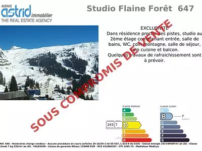 Vendu en nov. 2021 Flaine (74300) Appartement • 28,05 m² • 1 pièce Demander des infos Vendu en nov. 2021
