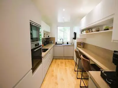 Maison 5 pièces de 115m² totalement refaite à neuf dans le bourg de la Celle Saint Cloud comprenant : une entrée avec placard, un WC séparé, un séjour avec rangements, une cuisine séparée...