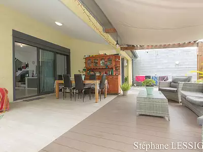 A Vendre à LA SALINE LES BAINS, MAISON VILLA 91 M2 env. sur 220m2 de terrain dans une résidence avec PISCINE, composée au RDC: CUISINE équipée ouverte sur salon SEJOUR accès TERRASSE et...