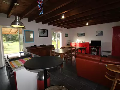 A LOUER T3 MEUBLE SITUE A LARMOR PLAGE TRÈS PROCHE DE L'ETANG DU TER, UNE GRANDE PIÈCE AVEC CUISINE A ÉQUIPÉE ET AMÉNAGÉE, 2 CHAMBRES AVEC LIT DOUBLE PLACARDS, SALLE D'EAU ET WC SÉPARÉ,...