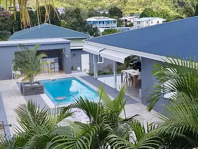VILLA ATYPIQUE BEAUX VOLUMES PISCINE T2 INDÉPENDANT Située dans un lotissement calme et résidentiel des Trois-Îlets, à proximité immédiate des plages, du golf et de l'ensemble des loisirs...