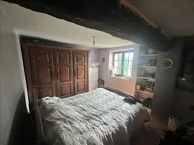 Rare ! Propriété entourée de plus de 15 hectares. Ancien corps de ferme à rénover comprenant : cuisine, salle à manger, salon, deux chambres, une salle d’eau et un cellier. Grange à...