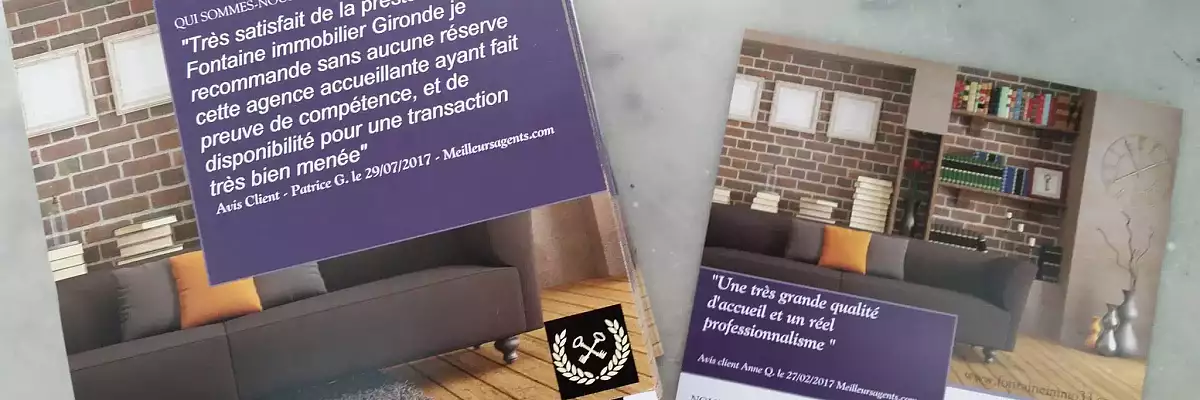 Fontaine immobilier agence indépendante présente sur la rive droite de Bordeaux depuis plus de 10 ans. Professionnel, sérieux et dynamique. Nous mettons tout en œuvre afin de vous accompagner au mieux.