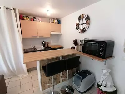 Appartement meublé situé dans un petit immeuble au 1er et dernier étage, il se compose d'une entrée, d'un salon/séjour, de deux chambres avec placard, d'une salle d'eau avec WC, d'une...