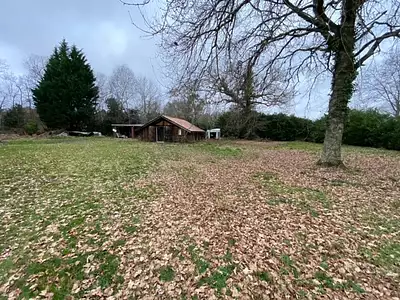 Maison de plain pied avec grand garage sur un magnifique terrain en lisière de forêt. Dans le centre d'Arjuzanx, en face du Lac, cette maison a besoin d'un bon raffraichissement... mais...