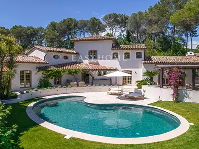 Superbe villa rénovée de 415 m² à Mougins – Piscine chauffée, terrain de 3 600 m², proche commodités Notre agence vous présente Nichée au cœur d’un environnement verdoyant et recherché de...