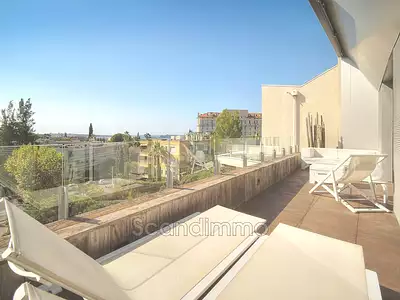 JUAN-LES-PINS APPARTEMENT AVEC JARDIN PRIVATIF, PISCINE SUR LE TOIT ET ACCÈS DIRECT À LA PLAGE Idéalement situé en bord de mer, rue Dulys, dans une résidence récente et intimiste avec...