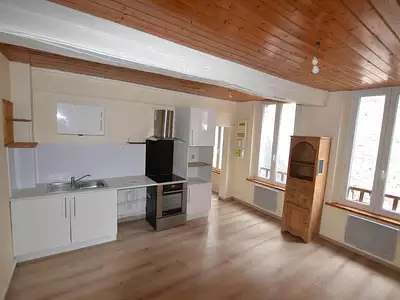 En Normandie, en Seine-Maritime (76), Cany Barville, au pied des commerces, maison édifiée sur sous-sol complet comprenant entrée, WC, cuisine aménagée, séjour donnant sur balcon, deux...