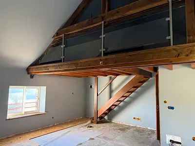 Auv 1202 : Maison partiellement rénovée, granges, 3970m2, belle vue. Cette propriété comprend une maison avec grange attenante et une seconde grange indépendante, situées sur un terrain...