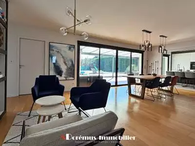 Un havre de paix, caché, à 15 minutes de Bordeaux - Nichée au cœur d’un parc paysagé de 7400 m2, cette villa d’architecte de 320 m2 habitables vous séduira par son élégance contemporaine,...
