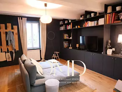 Appartement T2 de 36.27m² en rez de jardin, meublé entièrement refait à neuf. Lumineuse pièce de vie de 21.48m² comprenant la cuisine ouverte entièrement équipée, chambre avec armoire...