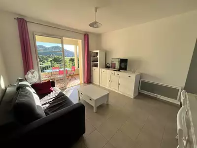 SAINT-FLORENT, CENTRE Dans résidence sur le port, appartement T3 climatisé, situé au 2ème étage, coin cuisine aménagé.