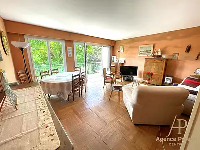SAINT GERMAIN PLEIN CENTRE VILLE, EN ETAGE AVEC ASCENSEUR, 5' RER, BEL APPARTEMENT DE 82.74 M², Comprenant : Entrée avec placard, Double séjour avec cuisine américaine aménagée et...
