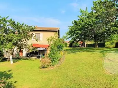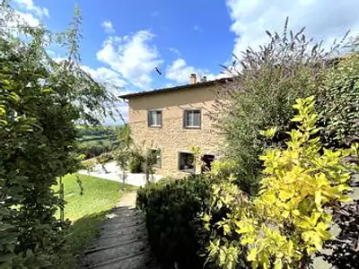 10 minutes du centre À voir absolument, dans un petit hameau calme, belle bâtisse tournée sur une MAGNIFIQUE COUR avec four à pizza et barbecue, bénéficiant d'une position dominante avec...