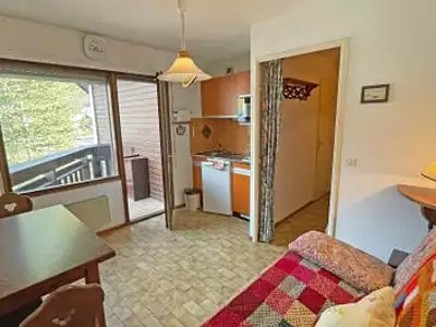 Dans la résidence très calme des 'Drugères', idéalement située entre la télécabine, la base de loisirs et centre village, superbe studio en état neuf au rez de chaussée surélevé...