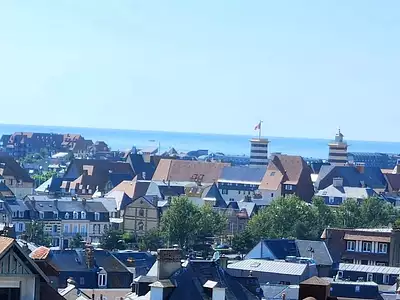 Terrasse Vue Mer Dans une villa du XIXème siècle, appartement de 49m2, avec une terrasse 8m2 vue mer au dessus des planches de Trouville. Un séjour avec porte fenêtre donnant sur la...