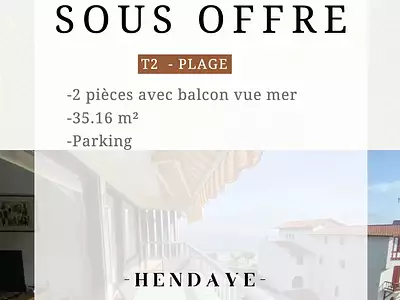 Appartement T2 35 m2 avec parking en plein coeur de plage En plein cœur de la plage d’Hendaye, ce chaleureux T2 de 35 m² vous accueille dans une atmosphère lumineuse et douce. La pièce...