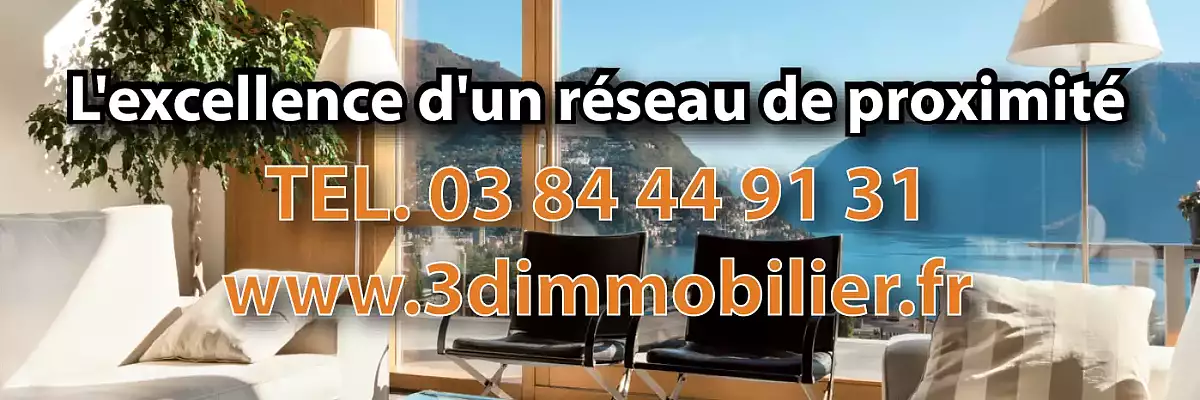 Désirant vendre une maison à Bletterans, nous avons contacté 3D immobilier (Villevieux, 39140). Notre interlocuteur a été M. Didier NOURRIGAT qui a fait preuve d'un professionnalisme humain exceptionnel dans l'accompagnement à la vente (disponibilité, réactivité, mise en valeur du bien sur Internet). Vente rapide.