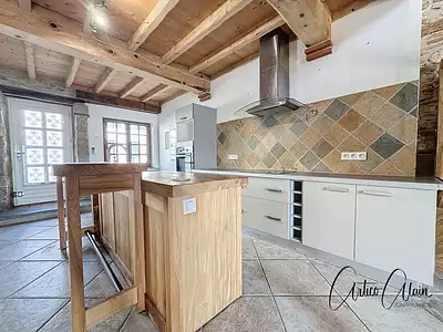 Maison de village mitoyenne avec terrain et grande surface de garage et atelier. Cette maison comprend : Au rez-de-chaussée : une entrée qui dessert la salle de bain, le WC séparé, la...