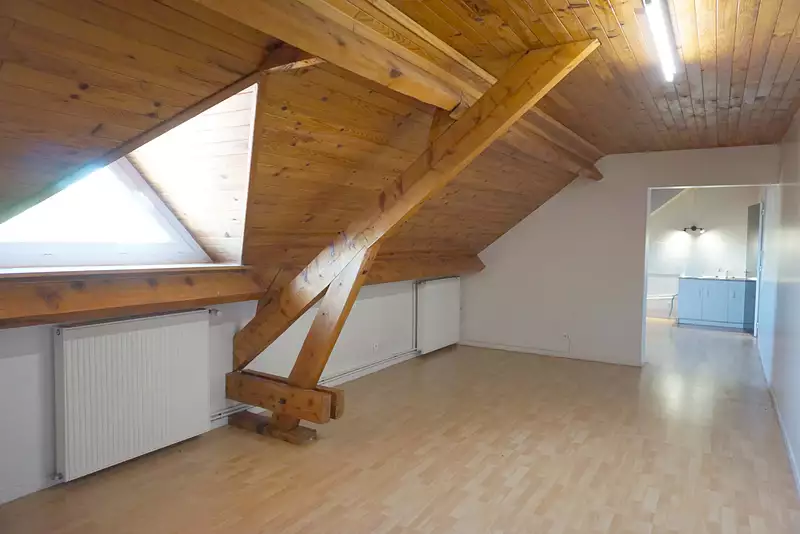 DIGOIN, centre ville, à deux pas des commerces, école et services, grand appartement de 110 m2 (loi Carrez), au 2ème et dernier étage sans ascenseur d'un petit immeuble en copropriété de 9 lots. Le logement comprend : entrée/couloir, cuisine ouverte sur séjour, deux chambres dont une avec pièce de rangement (borgne), salle d'eau et WC indépendant. Un local chaufferie. Chauffage individuel au gaz de ville, fenêtre en PVC double vitrage. Appartement libre à la vente. Pas de charge de copropriété.