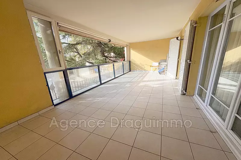 DRAGUIGNAN - A proximité immédiate du centre-ville - Dans Résidence de STANDING avec ascenseur - Appartement F4 de 100 m² composé : Hall d'entrée - Séjour 30 m² ouvrant sur TERRASSE de 26 m² - Cuisine indépendante équipée avec cellier attenant - 2 chambres avec placards (14,3 et 15,6 m²) - Salle d'eau - GARAGE en sous-sol