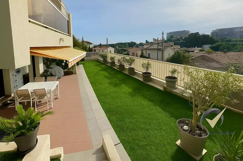 Le Cannet limite Mougins, Duplex avec Aperçu Mer, 200 m² de Jardin Privé, Double-Garage très facile d'Accès avec Immense Mezzanine, Entièrement Climatisé