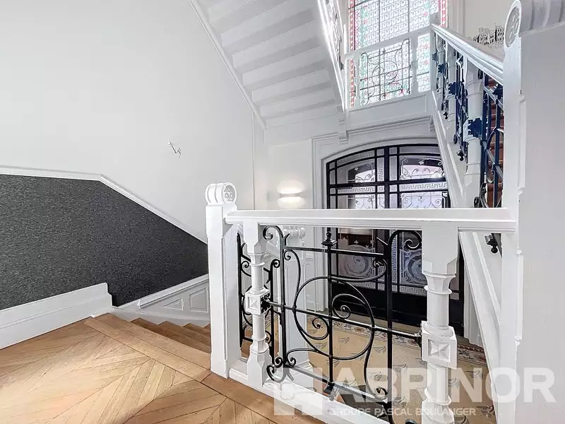 Au sein d'un Hôtel Particulier ayant conservé la totalité du charme de l'ancien : escalier fer forgé, vitraux, faïences ....
