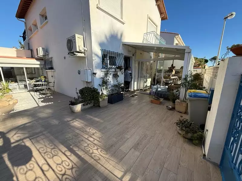 Situé dans un quartier pavillonnaire de SAINT-CYPRIEN plage, à 200 mètres de la mer. Appartement au rez de chaussée dans une petite copropriété de deux lots sans charges. Le logement totalisant environ 100m² de superficie utile est composé de deux chambres, d'un bureau, d'une salle d'eau, d'un wc, d'une véranda, d'un séjour ouvert sur la cuisine et d'un espace studio indépendant avec salle d'eau, chambre, wc et salon. Le bien a été rénové, climatisation, double vitrage, terrasse, salle d'eau. Produit rare sur le secteur. Nous consulter pour plus de renseignements.