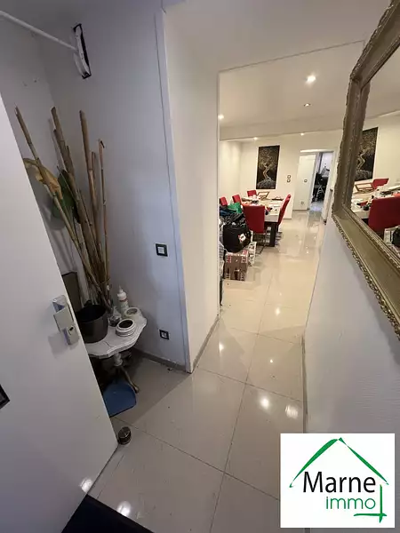 Situé en entre-sol gauche d'un immeuble bien entretenu, ce bien d'environ 100 m² se compose de deux espaces distincts :