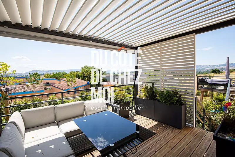 Au calme avec vue, superbe duplex comme une maison, de 101 m2 avec terrasse, jardin privatif et grand garage. Luminosité, modernité et espace pour cet appartement ultra-contemporain de 2022 offrant une entrée desservant une pièce à vivre ouverte sur l'extérieur avec cuisine américaine aménagée et équipée, une buanderie avec wc. A l'étage, un dégagement, trois chambres, une salle de bains avec wc. Terrasse avec pergola bioclimatique aluminium. Jardin de de 78 m2. Chauffage individuel gaz avec système domotique, au sol au premier niveau et radiateurs à l'étage. Climatisation réversible. Huisseries double vitrage. Stores. Alarme. Surface utile 102.63 m2 ? Surface Carrez : 100.79 m2. Statut juridique de la copropriété. Nombre de lots : 27 dont 9 logements. Montant annuel moyen des charges de copropriété : 890 euros. A proximité immédiate de toutes commodités Copropriété de 27 lots - dont 99 lots habitation. (Pas de procédure en cours). Charges annuelles : 890 euros.