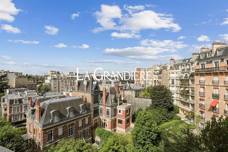 Paris 16 - Ranelagh - La Muette - 6ème étage - 3 pièces - 2 chambres - 101 m2 - Dans une rue résidentielle située entre la rue du Ranelagh et la Muette, au 6ème étage d'un bel immeuble moderne bien sécurisé et très bien entretenu, un appartement traversant de 3 pièces comprenant : une entrée, un salon ouvrant sur un balcon plein Est, une salle à manger, une grande chambre de 18 m2 donnant sur un jardin, plein Sud, avec une jolie vue dégagée, au calme absolu, une cuisine équipée, une salle de bains avec wc, une salle d'eau avec wc et de nombreux placards. Une cave - Box à 85 000 euros en sus. Appartement en très bon état - Plan modulable en deux chambres.