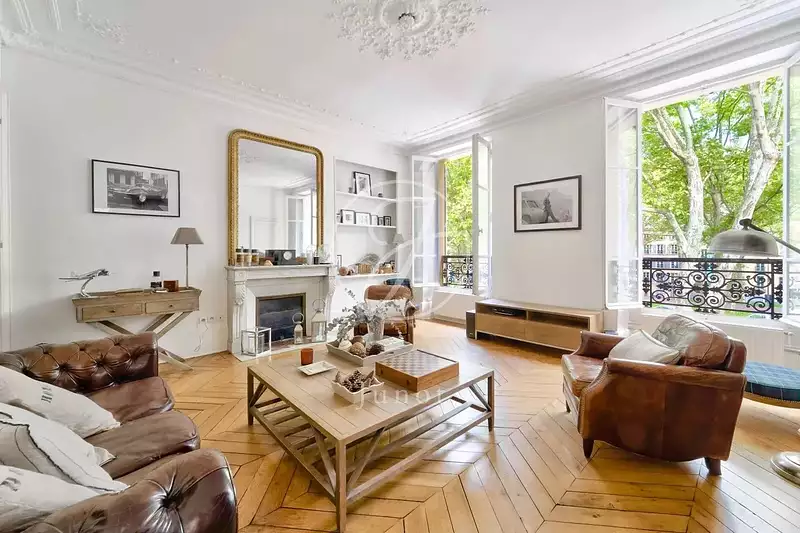 L’entrée mène à une superbe pièce de réception, lumineuse et chaleureuse, sublimée par des moulures raffinées, un parquet en chevron et une cheminée ancienne. Ce séjour offre une vue dégagée sur les façades classées du centre. Attenantes deux grandes chambres, calmes et baignées de lumière, offrent de splendides volumes. L’entrée distribue, de l'autre côté, une vaste salle à manger (ou 3e chambre), une cuisine séparée entièrement équipée et salle d’eau contemporaine récemment rénovée avec douche à l’italienne et double vasque.
