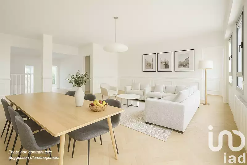 iad France - Gaëlle Chainieux vous propose: Avenue de Paris, bel appartement traversant en rez-de-jardin de 104,47 m² (101,32 m² Carrez) dans une copropriété de standing à taille humaine, grande terrasse végétalisée privative et parc arboré en accès privilégié.