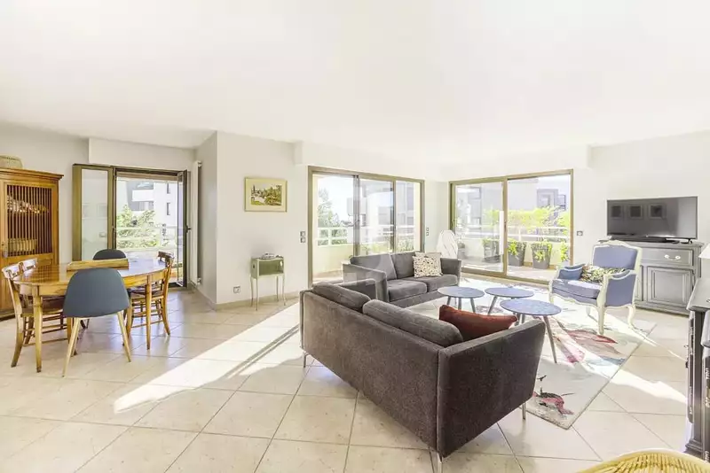 Dans une résidence de standing offrant une piscine, un court de tennis et un vaste parc paysager au calme absolu, découvrez ce magnifique appartement 4 pièces en angle, situé au dernier étage.