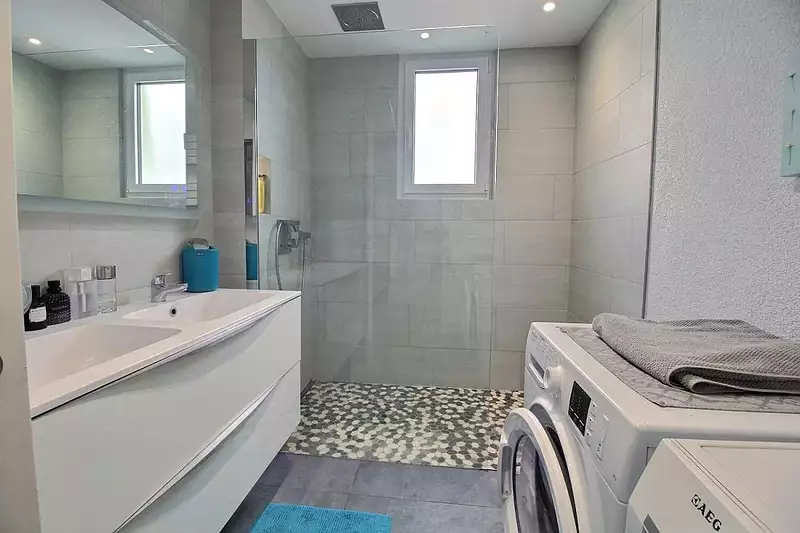 Il possède du triple vitrage, porte blindée, volets motorisés, chaudière neuve, de nombreux rangements.