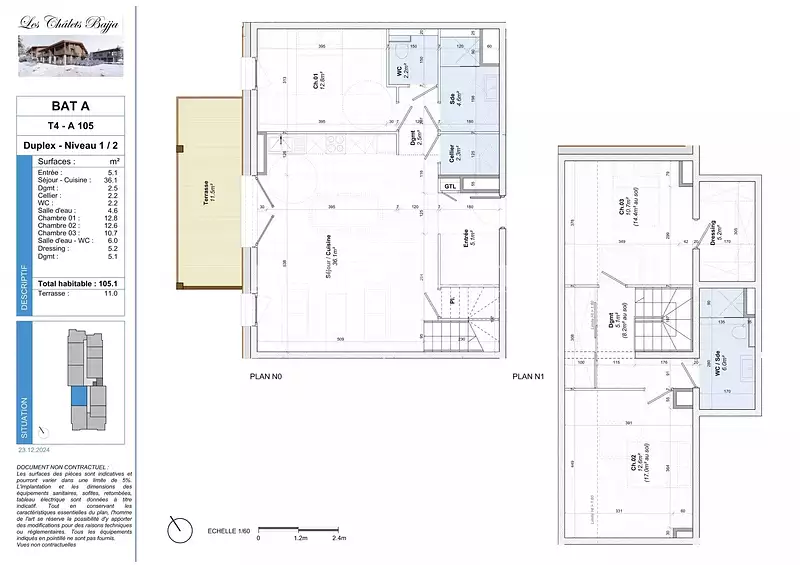 Appartement en Duplex 3 chambres 105m² centre de Notre Dame de Bellecombe (73590)