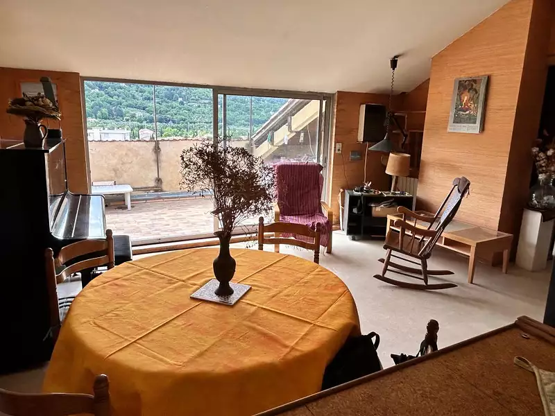 D'une superficie Loi Carrez de 72 m², il vous propose une surface utile de 102 m² répartis en un séjour avec coin cuisine, ouvrant sur une terrasse exposée sud et offrant une jolie vue dégagée, 4 chambres, salle de bains et wc.