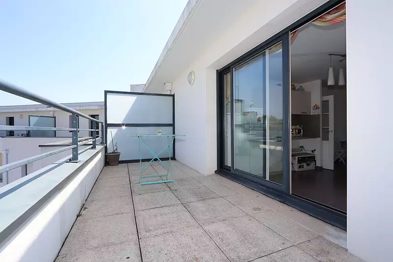 Saint-Nazaire, quartier de Villès Martin. - la mer, la plage et le remblai de Saint-Nazaire à quelques pas - les transports en commun à pied - accès rapide aux commerces et au centre-ville En exclusivité dans votre agence ! Très bel emplacement pour cet appartement T5 situé au dernier étage d'une résidence avec ascenseur. Bel appartement familial avec une grande terrasse, 2 balcons, 2 garages fermés en sous-sol, 1 cave. Emplacement recherché à seulement 5 minutes à pied de la plage de Villes Martin, découvrez cet appartement spacieux de 102 m² habitables, situé au 4ème et dernier étage au sein d'une résidence récente de 2011 avec ascenseur. Ravalement de façade récent (2022) Ce bien offre de beaux volumes : - Une pièce de vie lumineuse avec accès direct à une terrasse agréable et aux 2 balcons. - Une agréable cuisine aménagée et équipée (plaque, hotte, four) ouverte sur la pièce de vie. - 3 chambres dont 1 disposant d'un balcon . - Une salle de bains et un wc séparé. Menuiseries en PVC double vitrage, volets roulants électriques, chauffage électrique. diagnostic énergétique : C Ce bien est complété par deux garages fermés en sous-sol et une cave. Idéal pour une famille ou un couple à la recherche de confort et de proximité avec la mer, tout en bénéficiant d'un environnement résidentiel agréable et bien entretenu. (5.00 % honoraires TTC à la charge de l'acquéreur.)