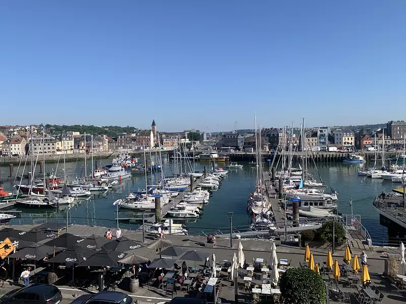 - Salon/séjour lumineux avec vue directe sur le port , cheminée fonctionnelle et cuisine ouverte aménagée et équipée