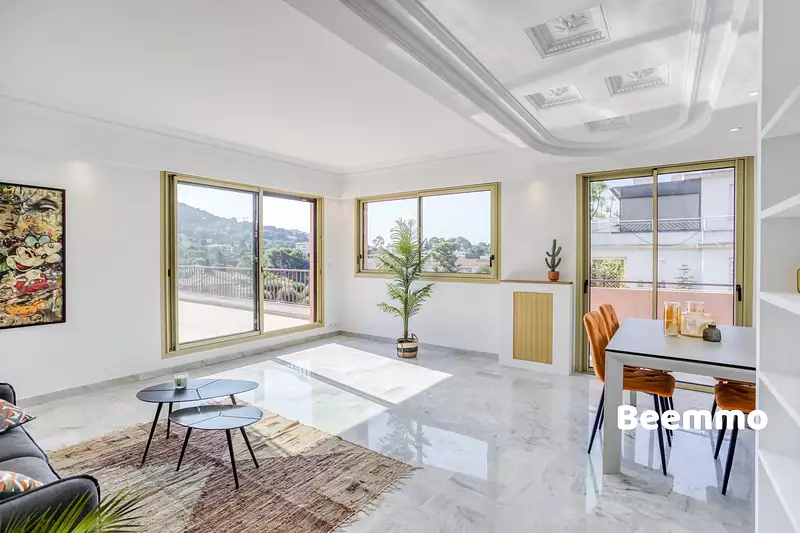 Au Cannet (06110), quartier Ste Catherine, découvrez ce somptueux appartement traversant 4 pièces de 103 m². Avec ses 123m2 de terrasse, c'est un véritable joyau où vous attend une vue panoramique sur la mer et les collines.