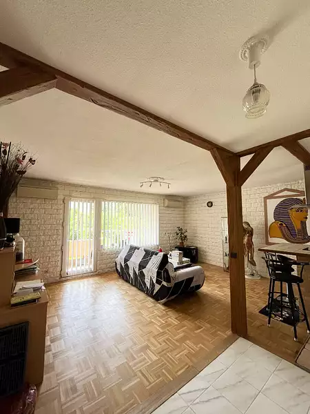 Côté salon, vous donnerez sur un grand balcon avec une vue dégagée et verdoyante sans vis-à-vis.