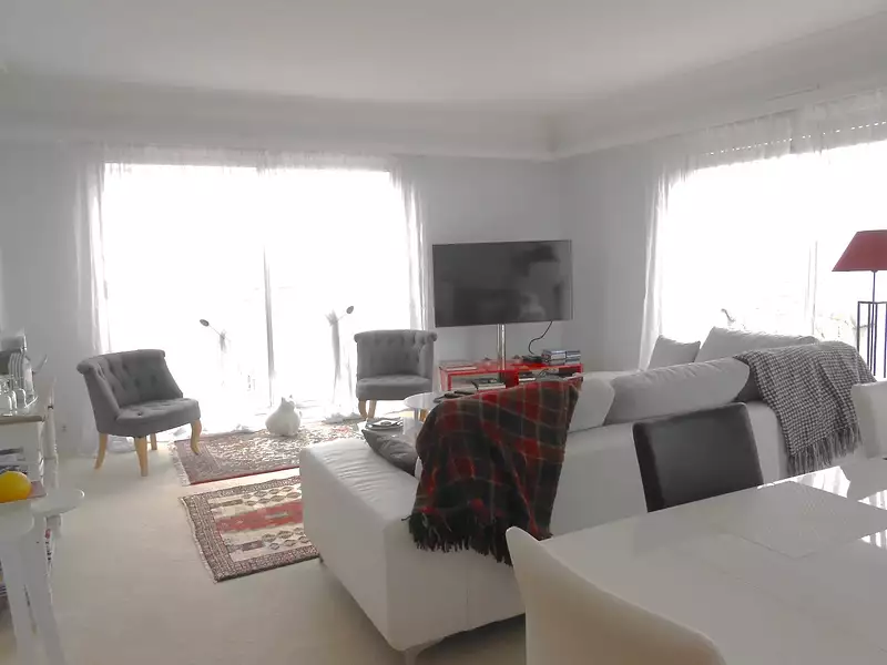En étage élevé, dans résidence de standing au 5 ème étage: bel appartement de plus de 103 m² offrant entrée avec placards, cuisine indépendante meublée et équipée, lumineux salon-séjour exposé Sud, 3 chambres dont une avec cabinet de toilette, WC indépendant, salle de bains avec douche.