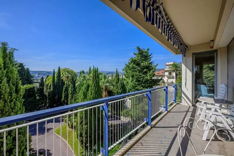 En excellent état et occupant un étage élevé, il bénéficie d'une vue dégagée sur la verdure et les collines, avec une exposition Ouest et Nord, permettant de profiter pleinement de la lumière naturelle.